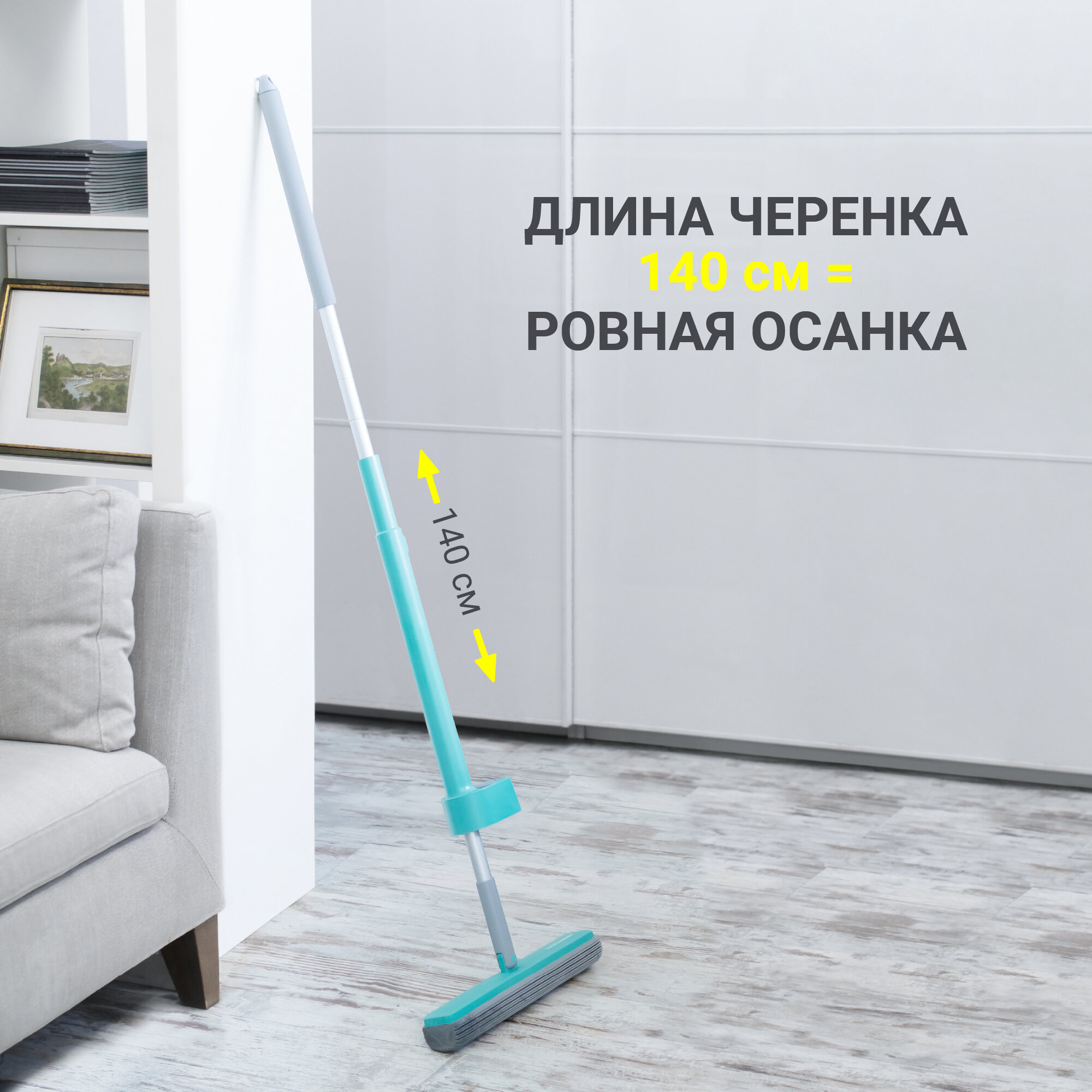 Много лет пользуюсь швабрами с отжимом, но эту модель купила впервые и очень довольна. Во-первых надеюсь, что губка прослужит дольше в этой модели и отжим у нее идеален. Складывается очень компактно и выглядит классно. |