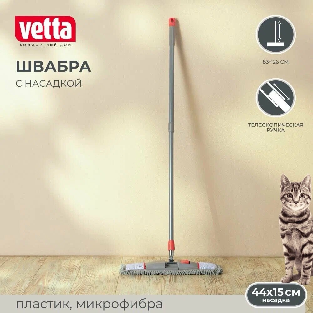 Швабра с насадкой из микрофибры Vetta 44х15 см,с телескопической ручкой длина 83-126 см
