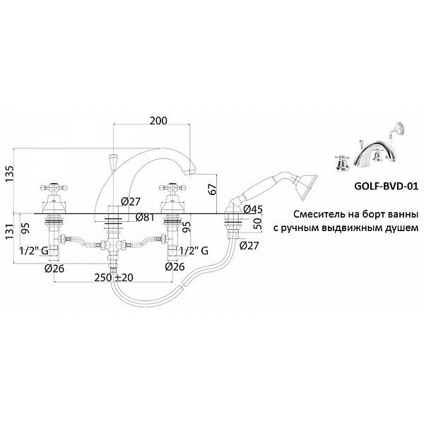 Смеситель для ванны Cezares GOLF-BVD-02-M интересное: