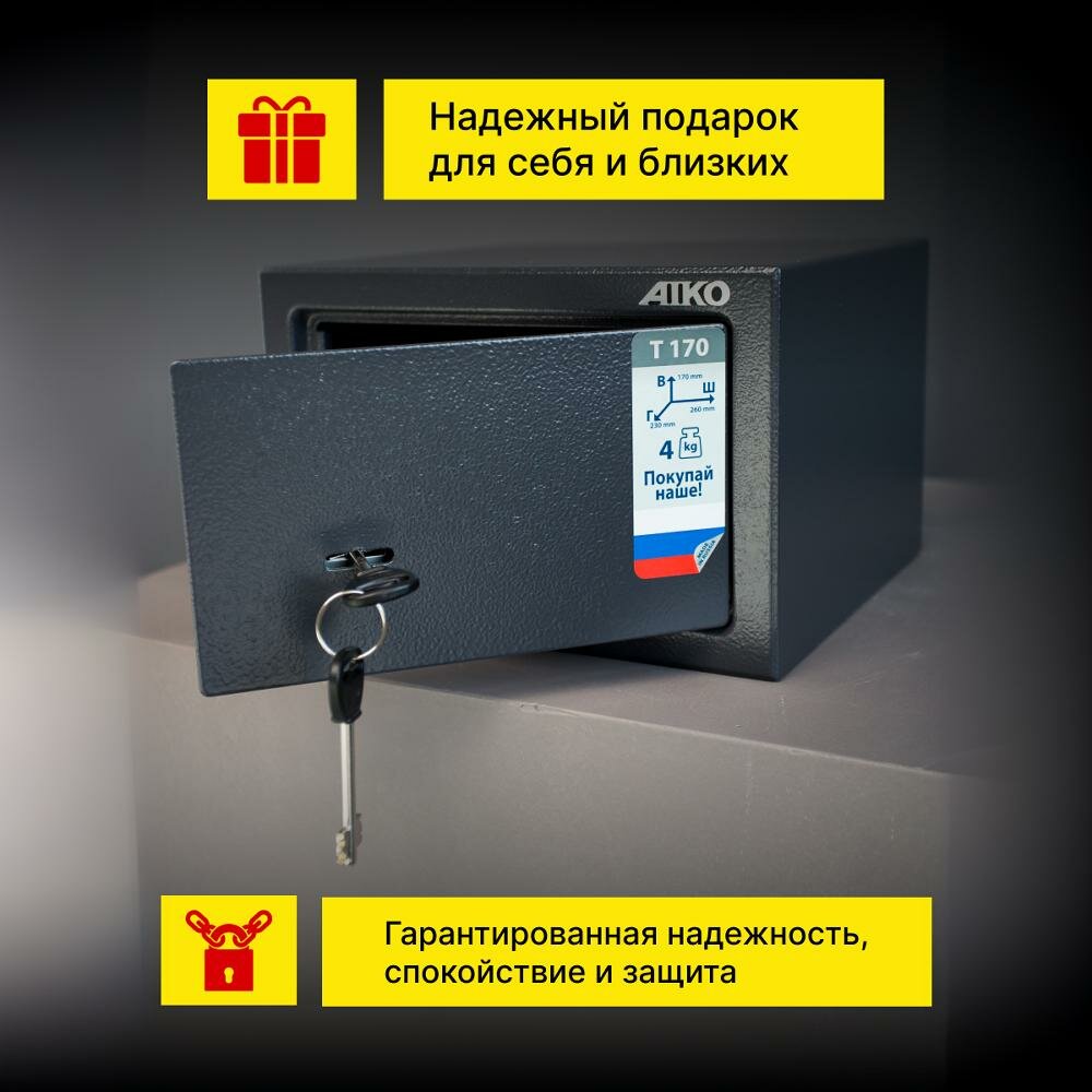 Металлический сейф для хранения AIKO Т-170, 260х170х230мм, ключевой интересное: