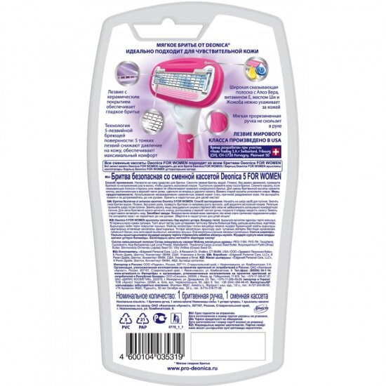 Бритвенный станок DEONICA for Women, 5 лезвий, с 1 сменной кассетой интересное: