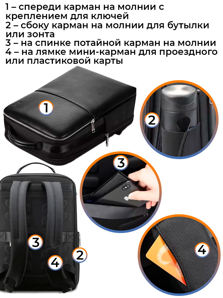 СохранитьРюкзак городской дорожный Bopai вместительный 22л, для ноутбука 15.6", водонепроницаемый, с увеличением объема, черный интересное: