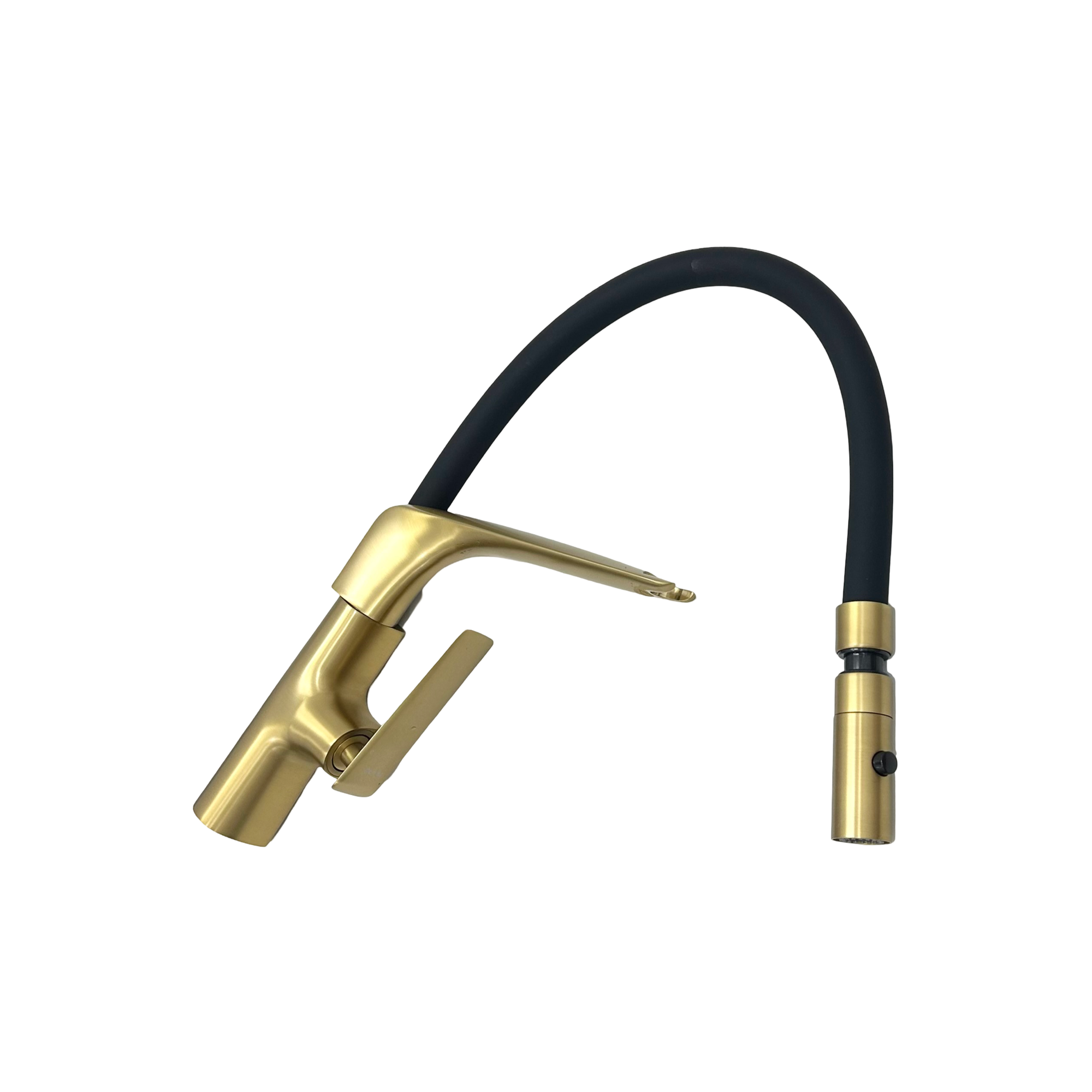 Смеситель для кухни с гибким изливом OUTE T11013BJ золотой сатин, два режима аэратора интересное: