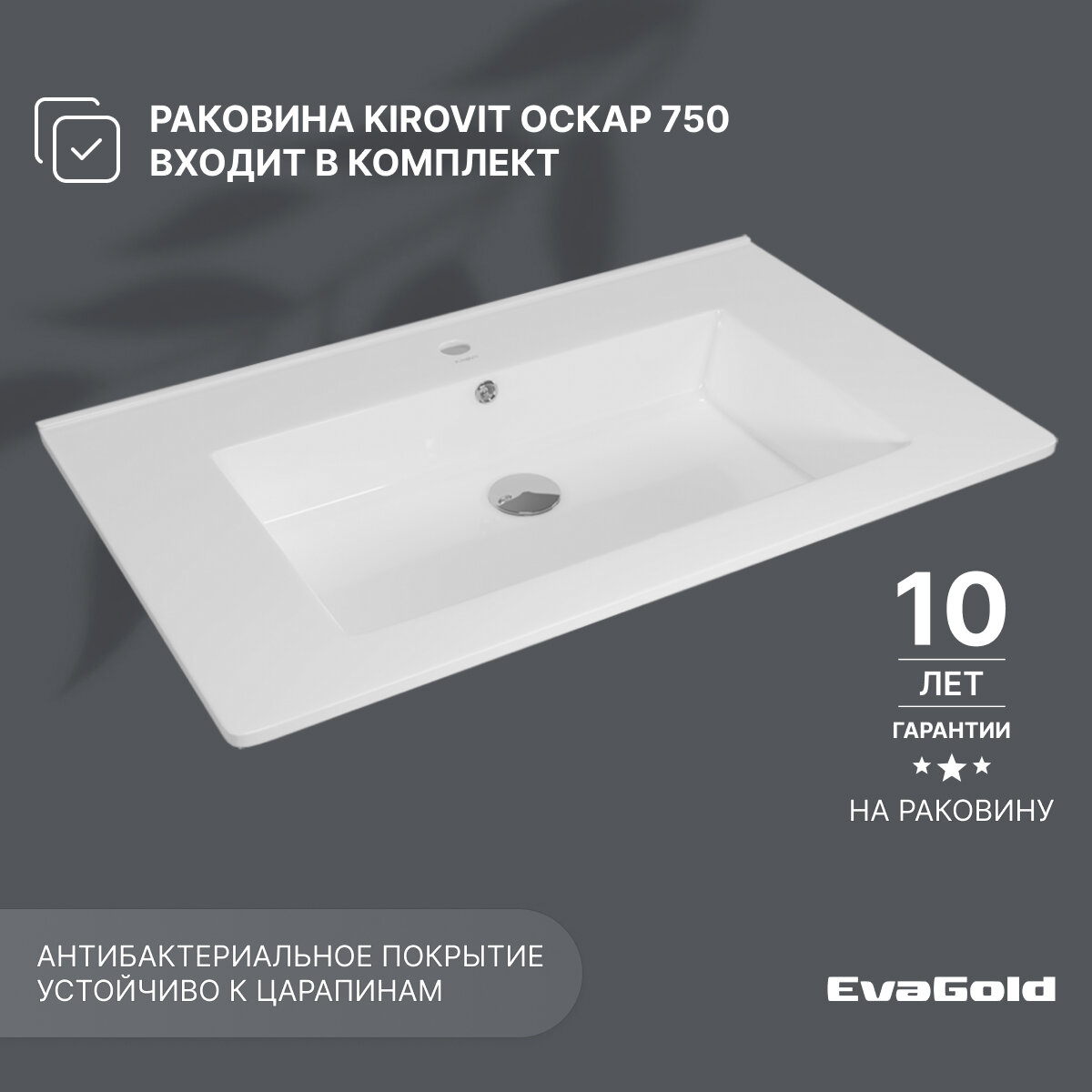 Тумба с раковиной подвесная EvaGold Bruklin 75 Оскар 750 белая мраморная для ванной