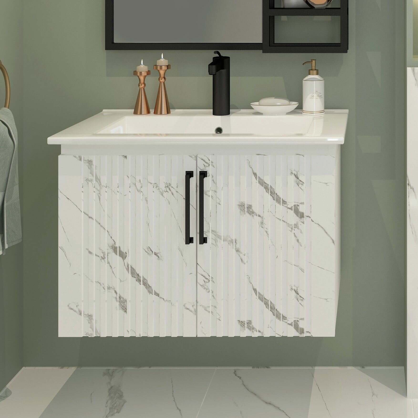 Тумба подвесная с раковиной EvaGold 75 см, набор ND44.4 белый мрамор для ванной