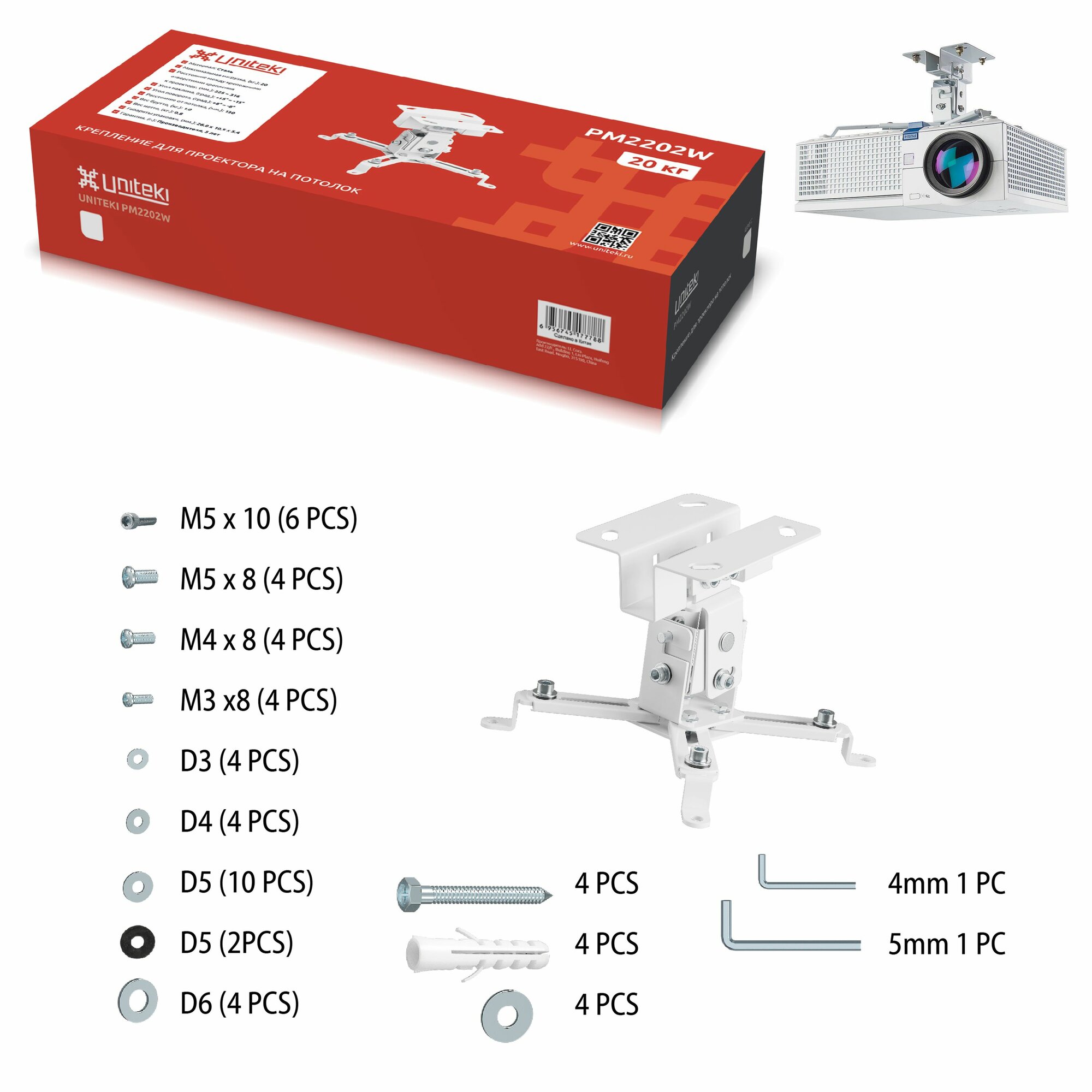 Купить Крепление универсальное UniTeki PM2202W настенное потолочное, наклонно поворотный, макс. нагрузка до 20 кг, белый