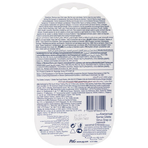 VENUS SNAP EMBRACE- это мини бритва в стильном футляре, которая поместится в любую сумочку! У бритвы есть мини-ручка, которую удобно держать в руке. Также легко менять сменную кассету, кстати, к этому бритвенному станку подходят любые сменные кассеты Venus! В комплекте идёт кассета с 5 лезвиями Embrace, которые не пропускают практически ни единого волоска. Также есть смазывающая полоска, которая активируется в воде и обеспечивает идеальное скольжение. Бритва двигается в нескольких плоскостях, повторяя все изгибы тела, для безупречной гладкости кожи и практически полного отсутствия пропущенных волосков. Я пользуюсь им уже как 2 года и рекомендую данный бритвенный станок! |