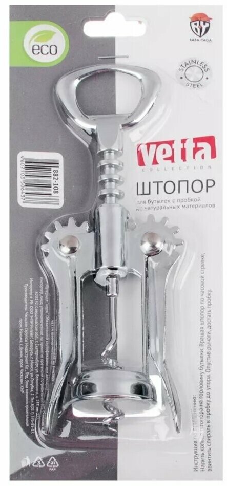 VETTA Штопор на блистере 16,5x5см, нерж.сталь 882-108