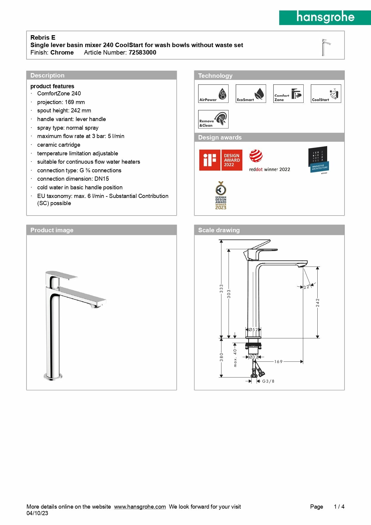 Ниже Вы можете прочитать отзывы на Hansgrohe Rebris E Смеситель для раковины-чаши 240, однорычажный, CoolStart, без сливного набора, хром, ознакомится с подробными характеристиками, посмотреть интересные обзоры и фотографии на Hansgrohe Rebris E Смеситель для раковины-чаши 240, однорычажный, CoolStart, без сливного набора, хром.