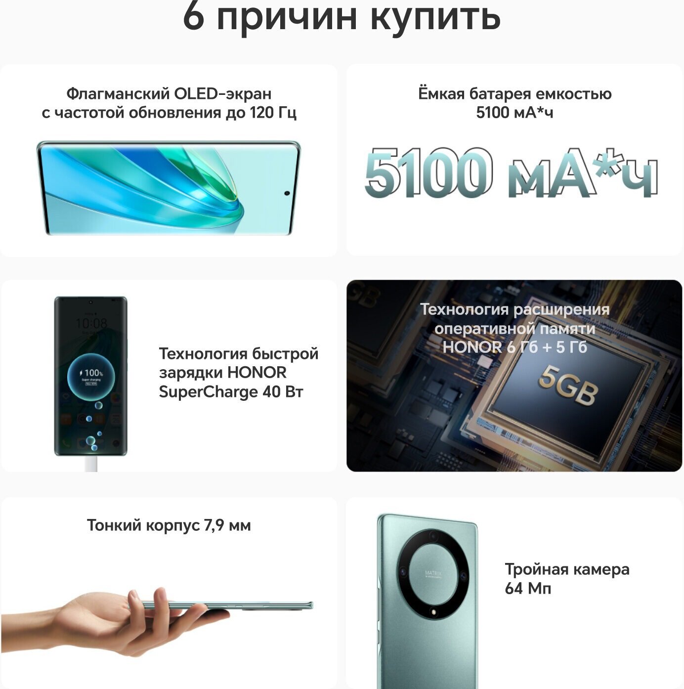 Купить Смартфон HONOR X9A 6/128 ГБ Global для РФ, Dual nano SIM, emerald green