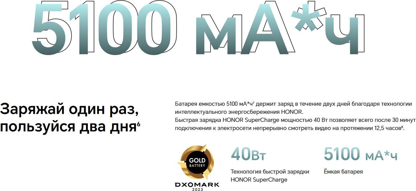 Смартфон HONOR X9A 6/128 ГБ Global для РФ, Dual nano SIM, мерцающий белый