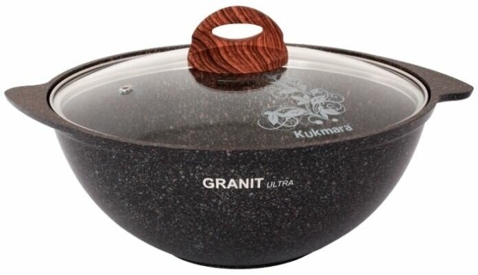 Казан Kukmara 3,5 л Мрамор Кофейный, литой алюминий со стеклянной крышкой 26см, кмк37а