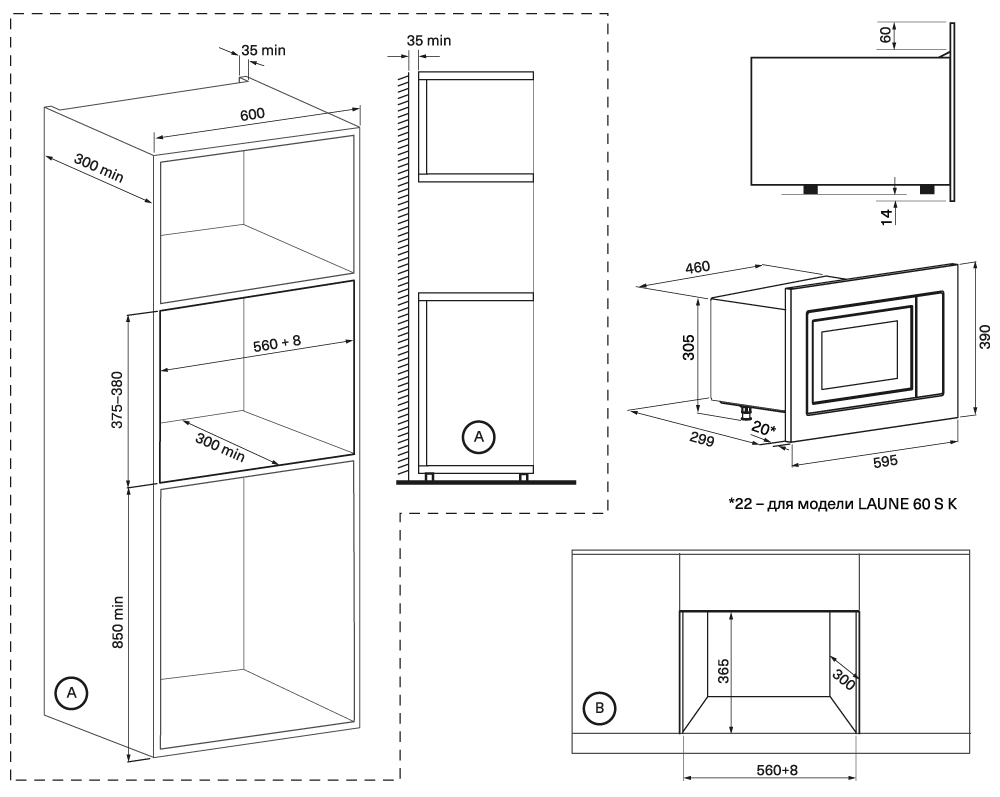 Krona Laune 60 BL K Встраиваемая микроволновая печь .