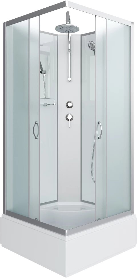 | Комплектация | душевая лейка, зеркало, поддон, полки, сиденье |