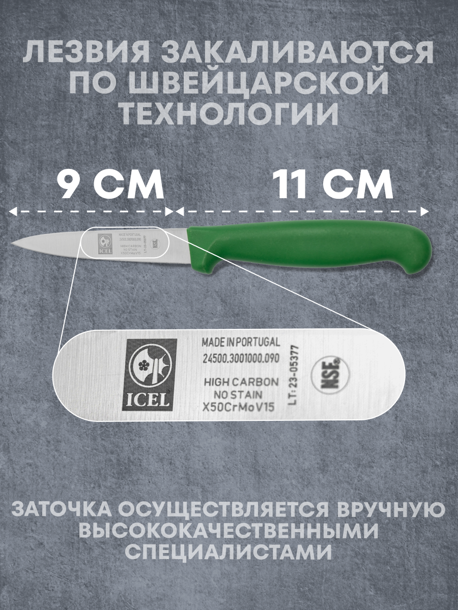 Нож для овощей 90/200 мм. зеленый, Junior Icel, материал нержавеющая сталь интересное: