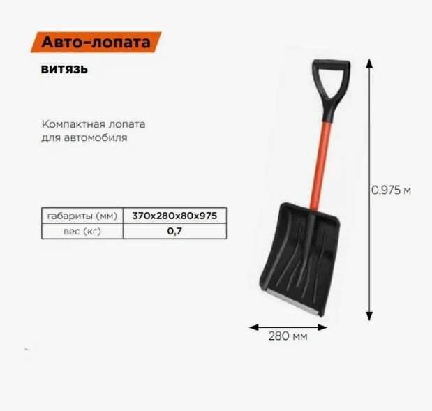 Лопата Cycle Автовитязь 9607-00, автомобильная, пластик, алюминий, 28см интересное: