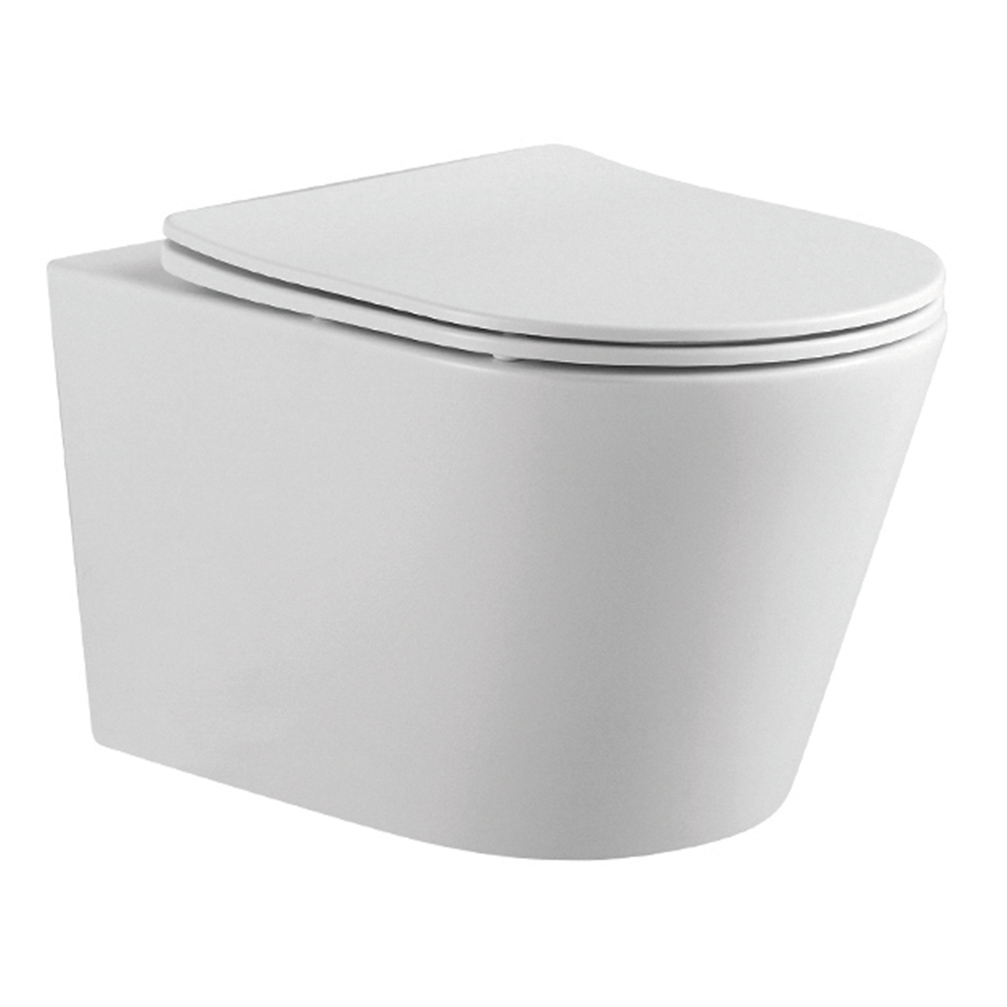 AQ1905-MW вега Унитаз подвесной безободковый 525*360*320мм, тонкое сиденье с механизмом плавного закрывания, крепеж, цвет матовый белый