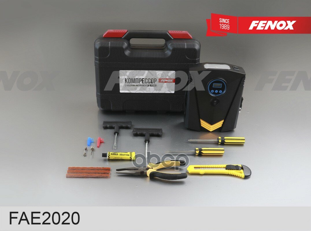 FAE2020 FENOX Компрессор с фонарем и набором инструментов в кейсе