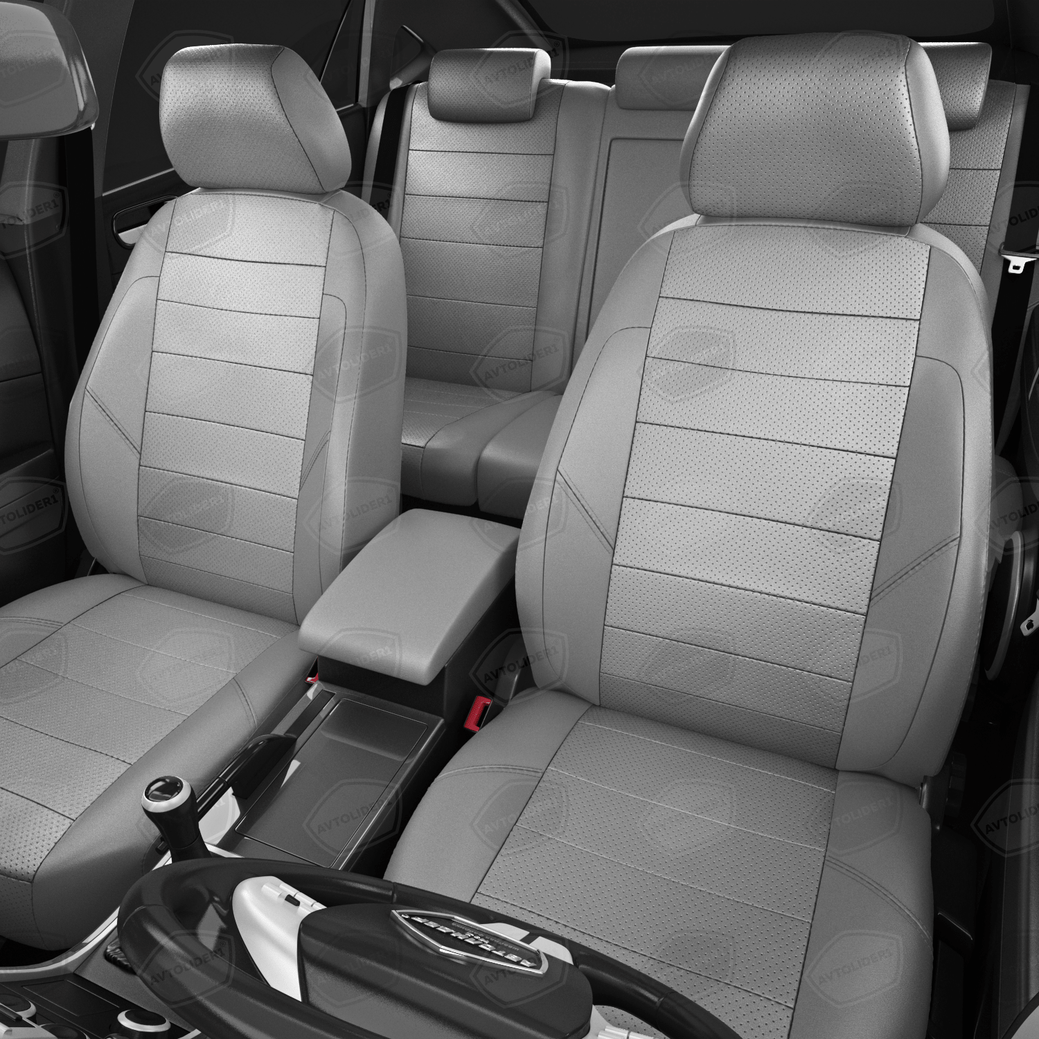 Комплект каркасных чехлов 5D CarFashion Consul Plus, чёрные, отстрочка серая