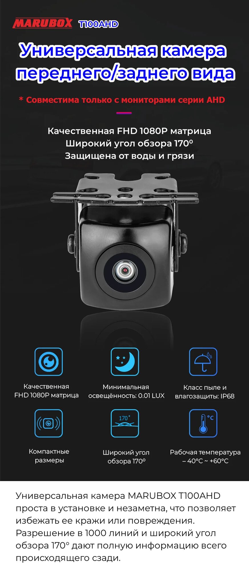 Купить Marubox T100AHD камера заднего вида для авто, AHD 1080р / 720р, камера заднего / переднего вида, реальный угол обзора 170 градусов, автомобильная камера широкоугольная высокого разрешения для парковки, полный комплект , 12 В
