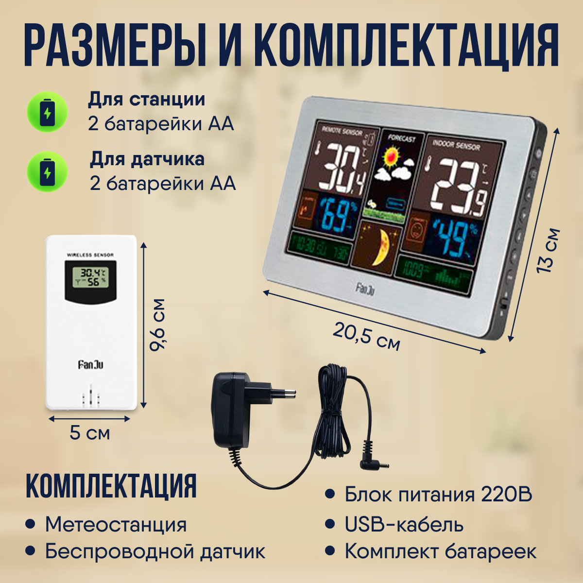 Метеостанция FanJu, беспроводной датчик, до 3 датчиков, 20см х 13см х 3,5 см интересное: