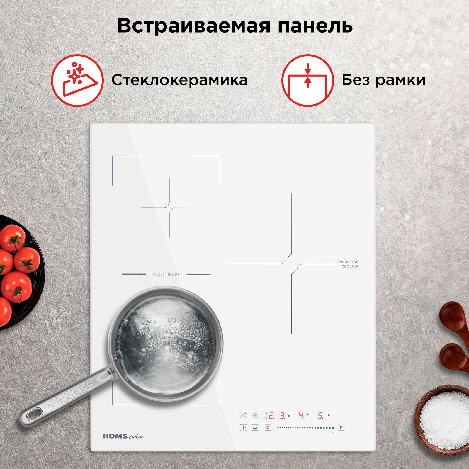 Купить Индукционная варочная панель HOMSair HIC43SWH белая стеклокерамика, 5.8 кВт, 3 конфорки