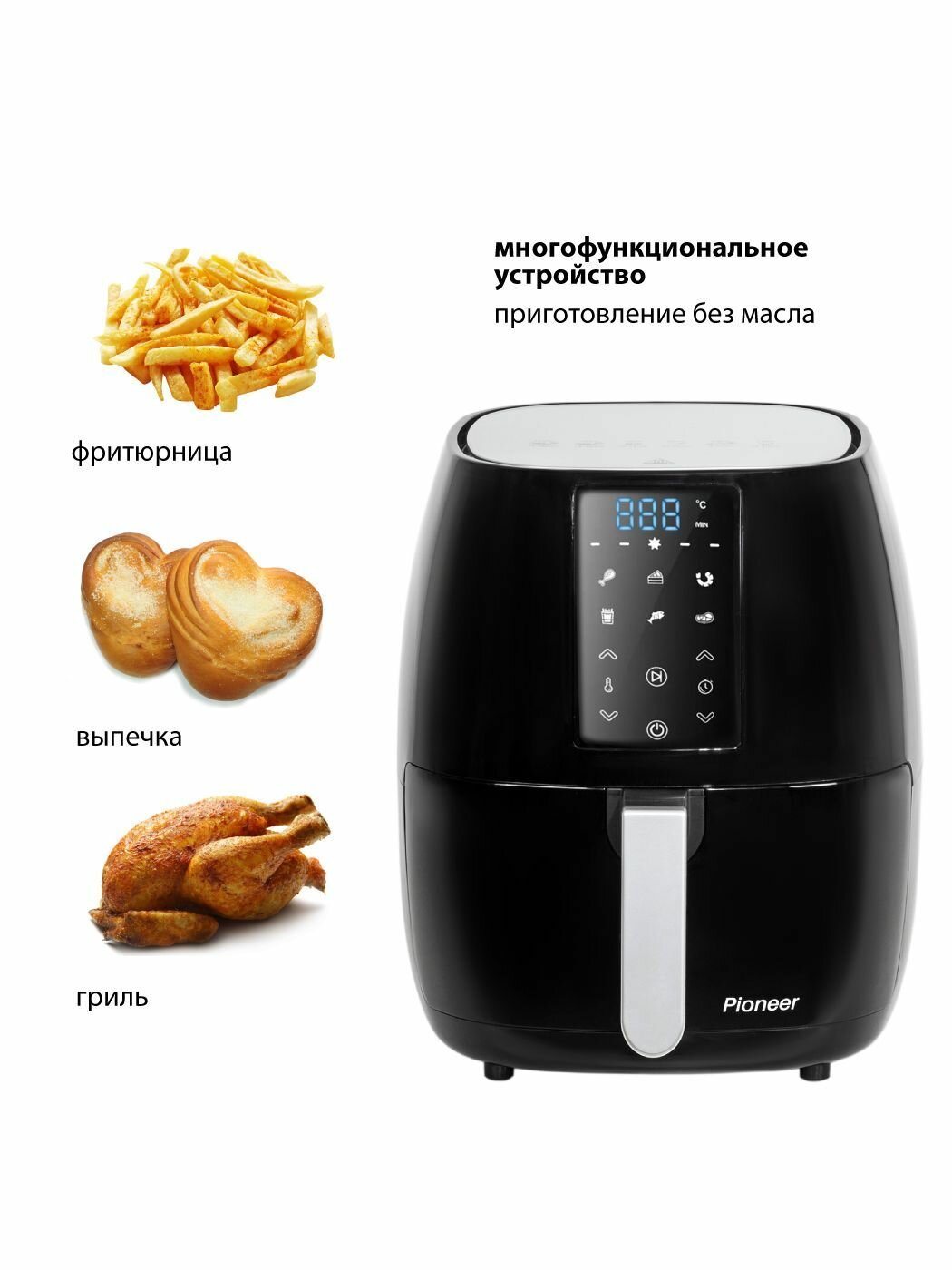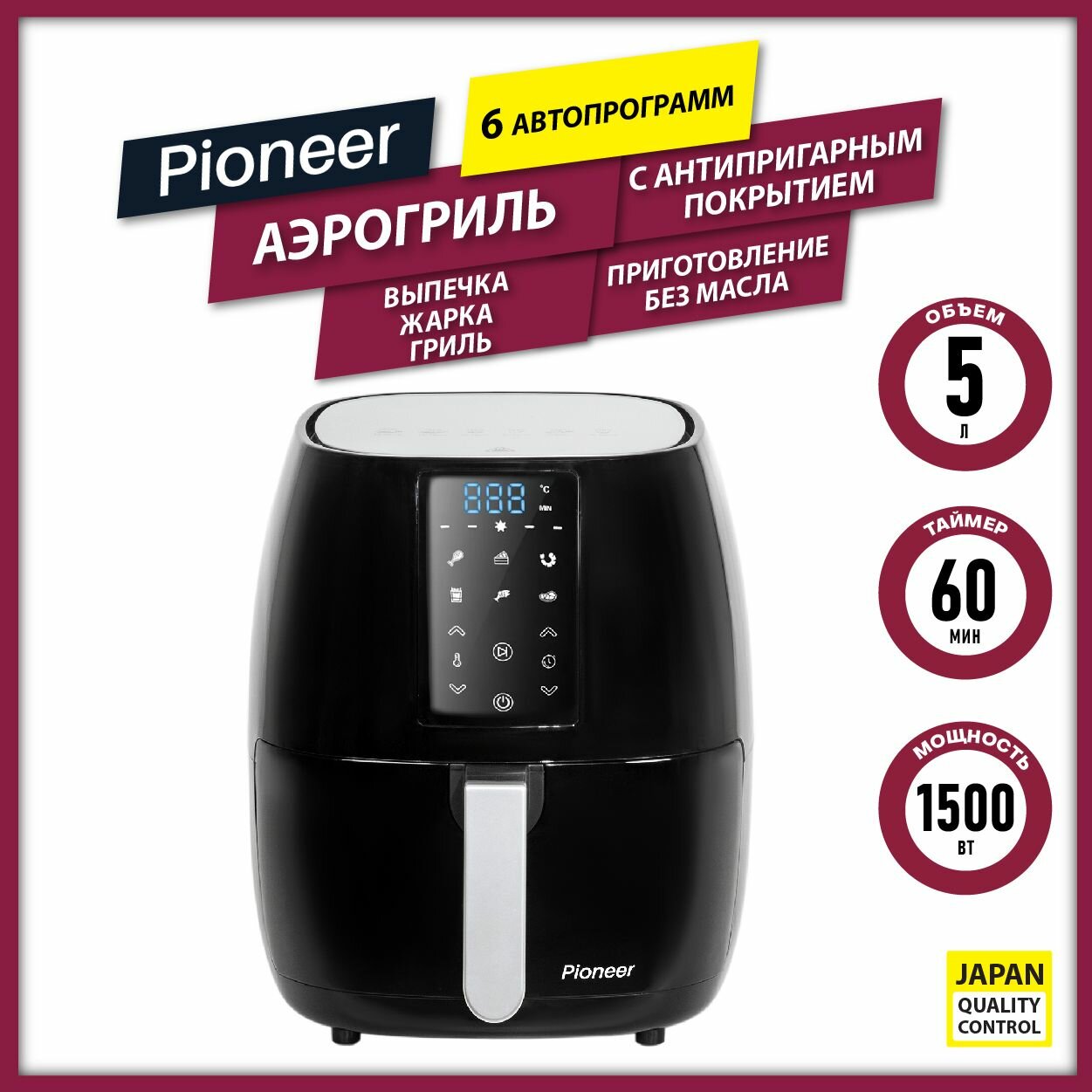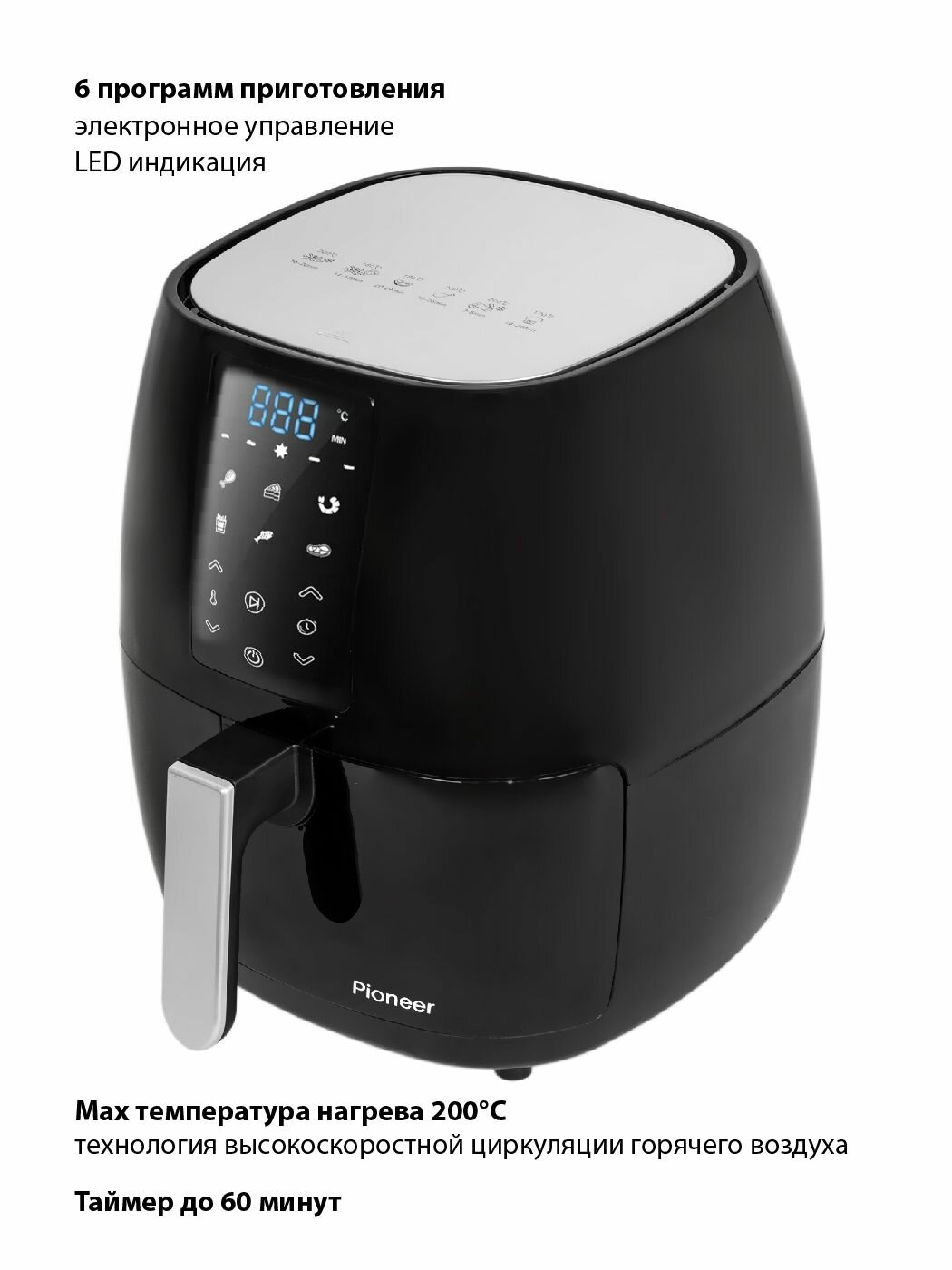 Аэрогриль Pioneer 5 л с антипригарным покрытием, приготовление без масла, таймер на 60 минут, 6 программ, гриль, жарка, выпечка, 1500 Вт