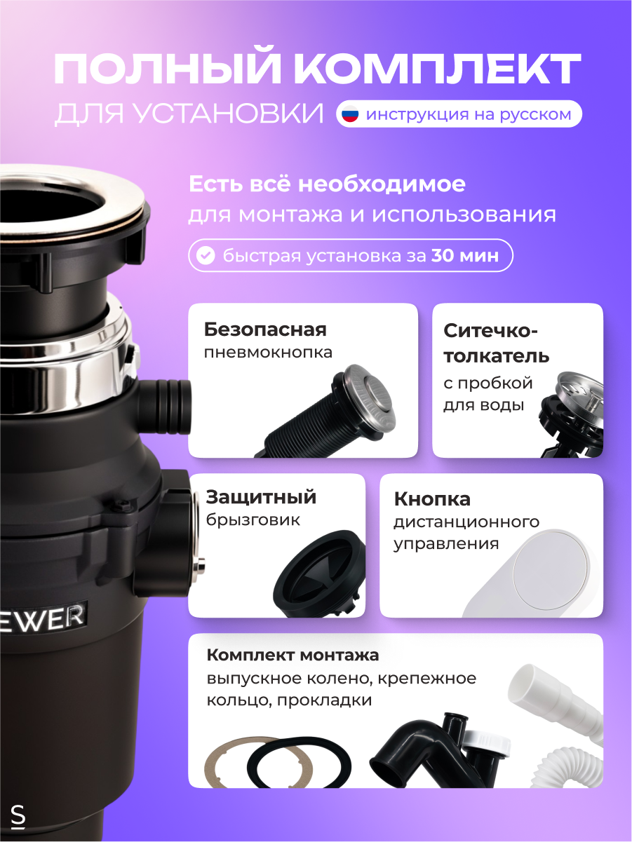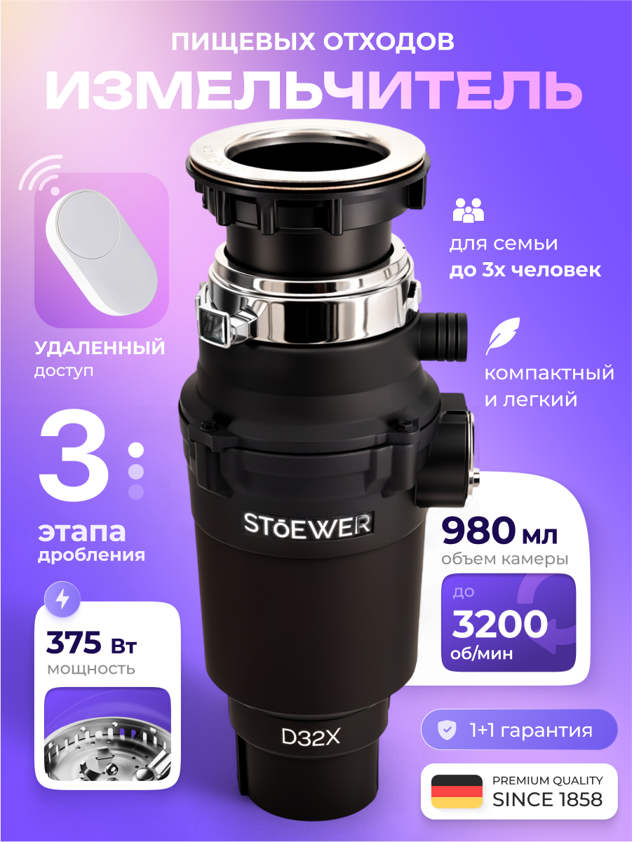Измельчитель пищевых отходов STOEWER ШТОЕР D320 MAX с дистанционным модулем управления интересное: