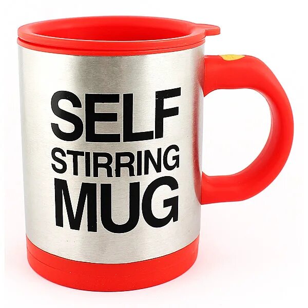 Кружка Self stirring mug, нержавеющая сталь, пластик, красная, с миксером интересное: