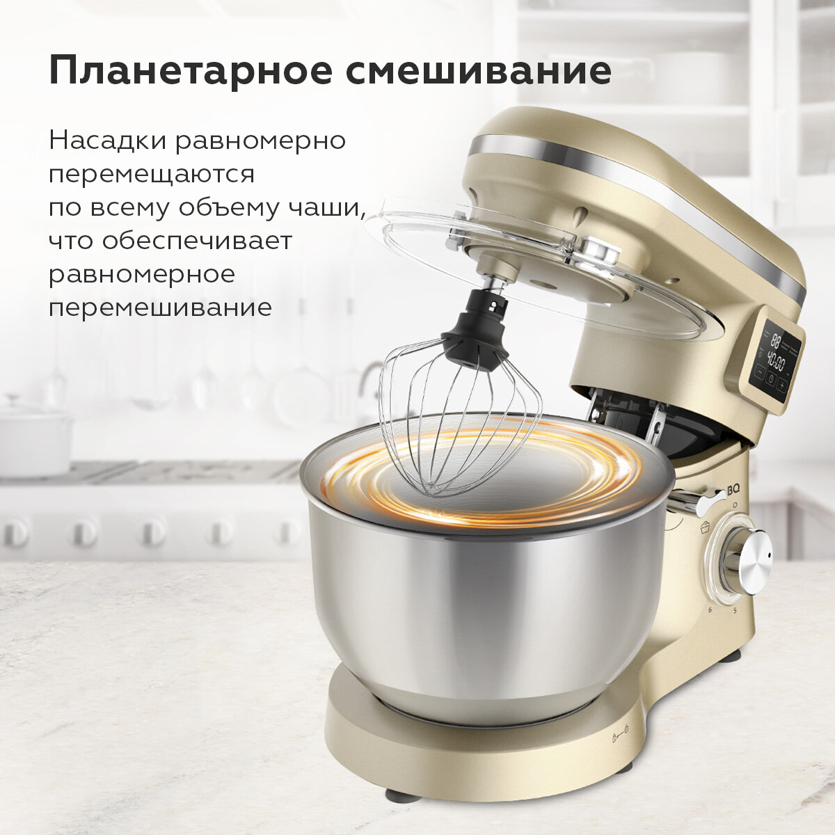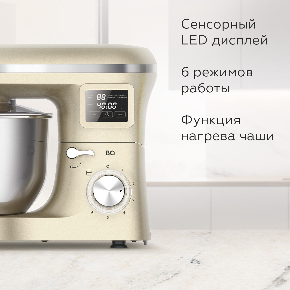 Купить Планетарный миксер BQ MX640 Золотистый / Функция нагрева чаши / Мощность 1600 Вт / 6 скоростей