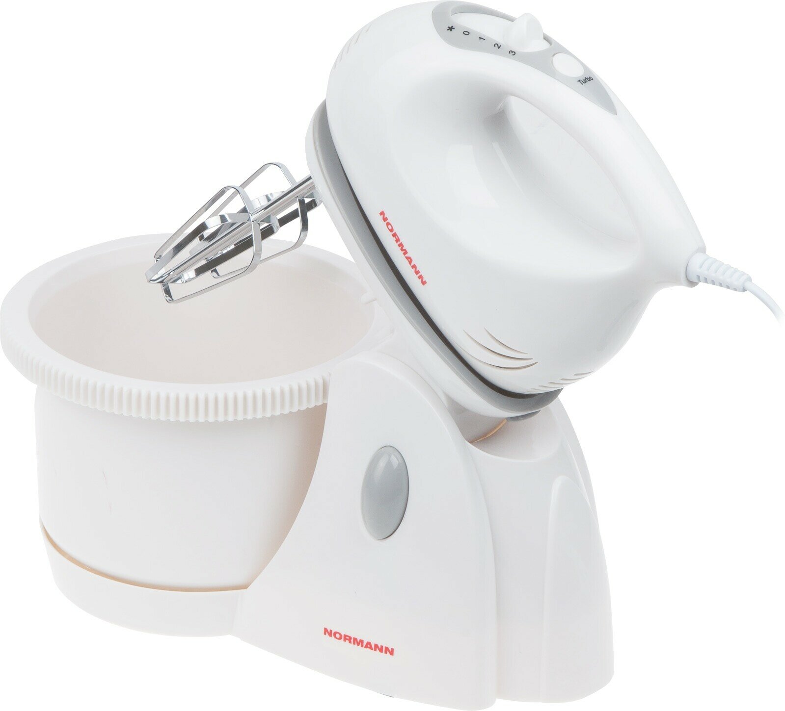 Миксер AMX-513 NORMANN (Стационарный/Ручной, 350 Вт, турбо, вращающаяся чаша 2л, насадки)