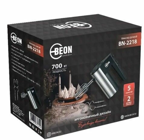 Миксер кухонный ручной Beon BN-2218, 700 Вт, черный/серебристый интересное: