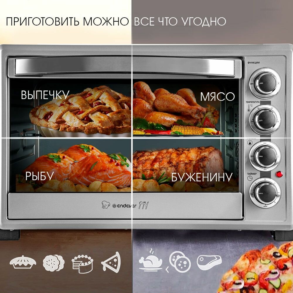 Мини печь электрическая ENDEVER Danko-4037, 1600 Вт, духовка электрическая настольная 35 л, конвенция, 100-250 градусов интересное: