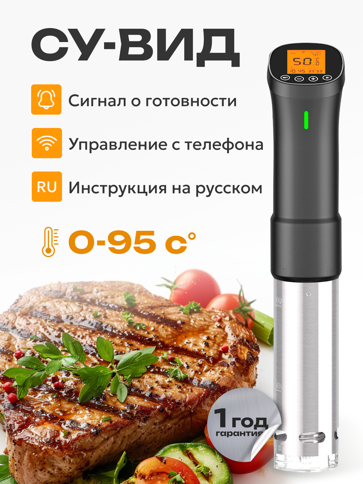 Погружной термостат Prime Grill "ISV-200W", с WiFi, электронное управление, защита от перегрева интересное: