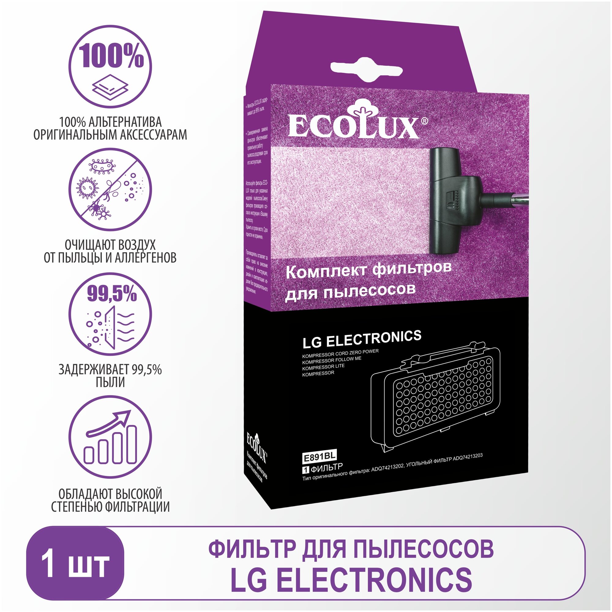Ecolux Фильтр для пылесосов LG (пр-х с 09.17) (ADQ74213203), 1 шт, E891BL интересное: