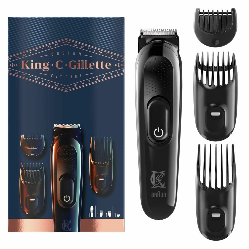 Триммер для бороды King C. Gillette, с тремя съемными насадками-гребнями