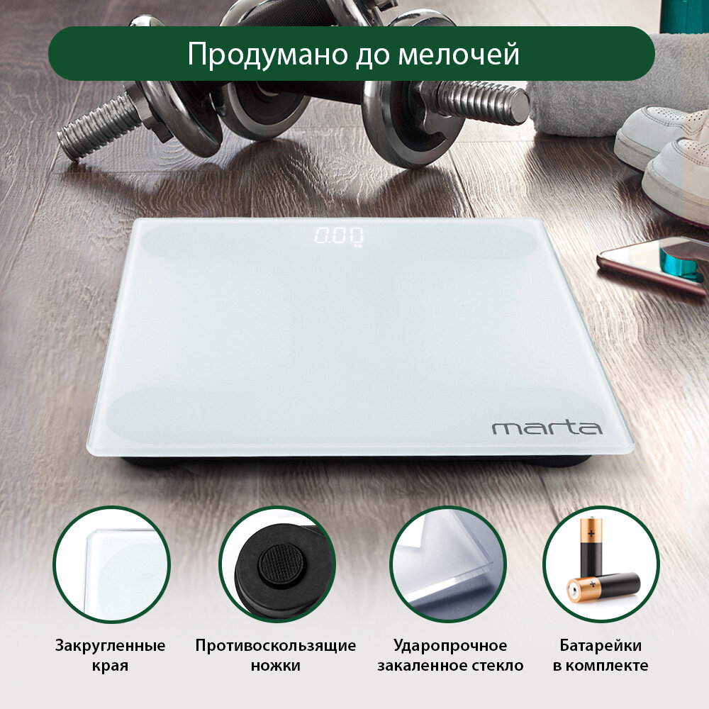 MARTA MT-SC3600 белый жемчуг весы напольные LED дисплей, встроенный термометр