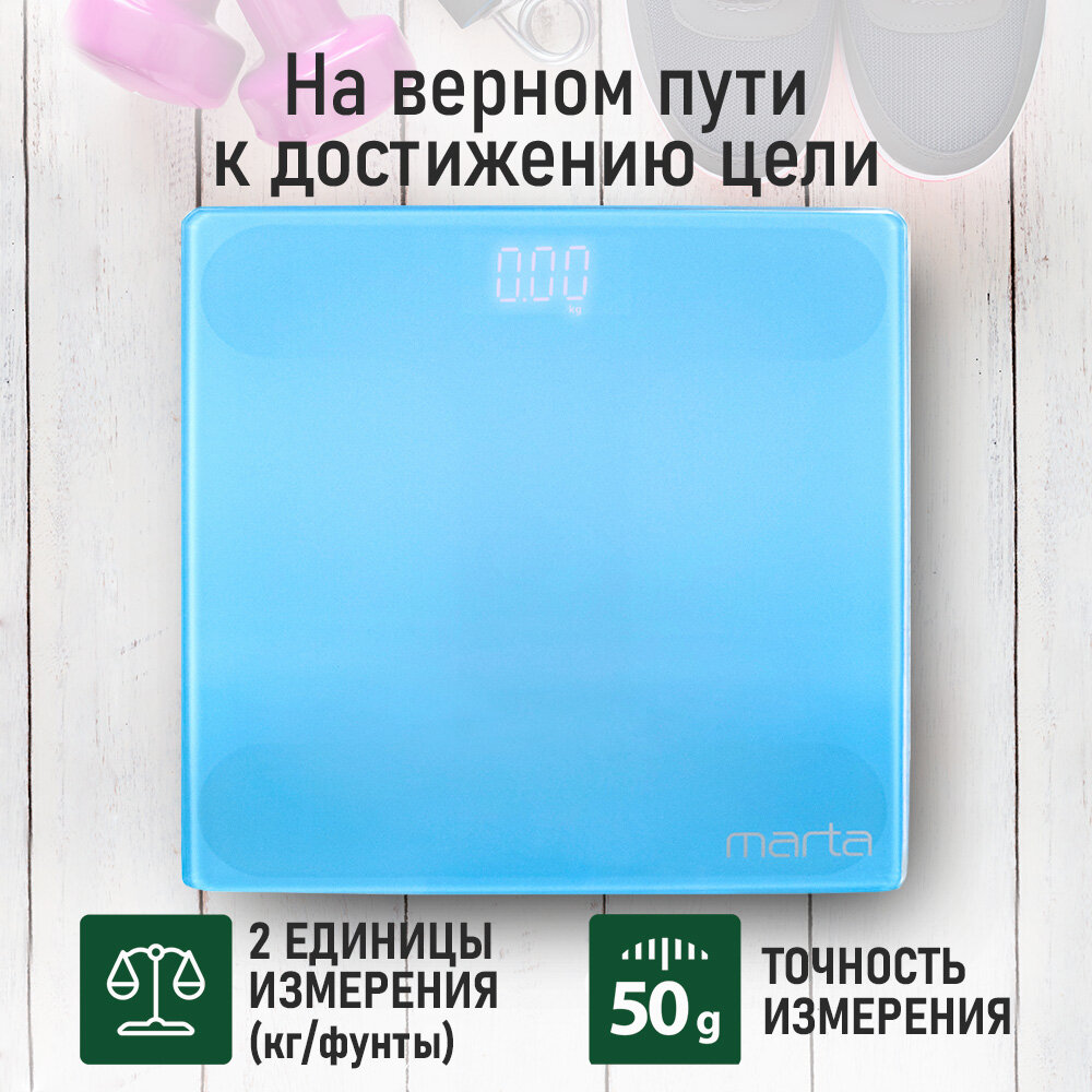 MARTA MT-SC3600 голубой аквамарин весы напольные LED дисплей, встроенный термометр