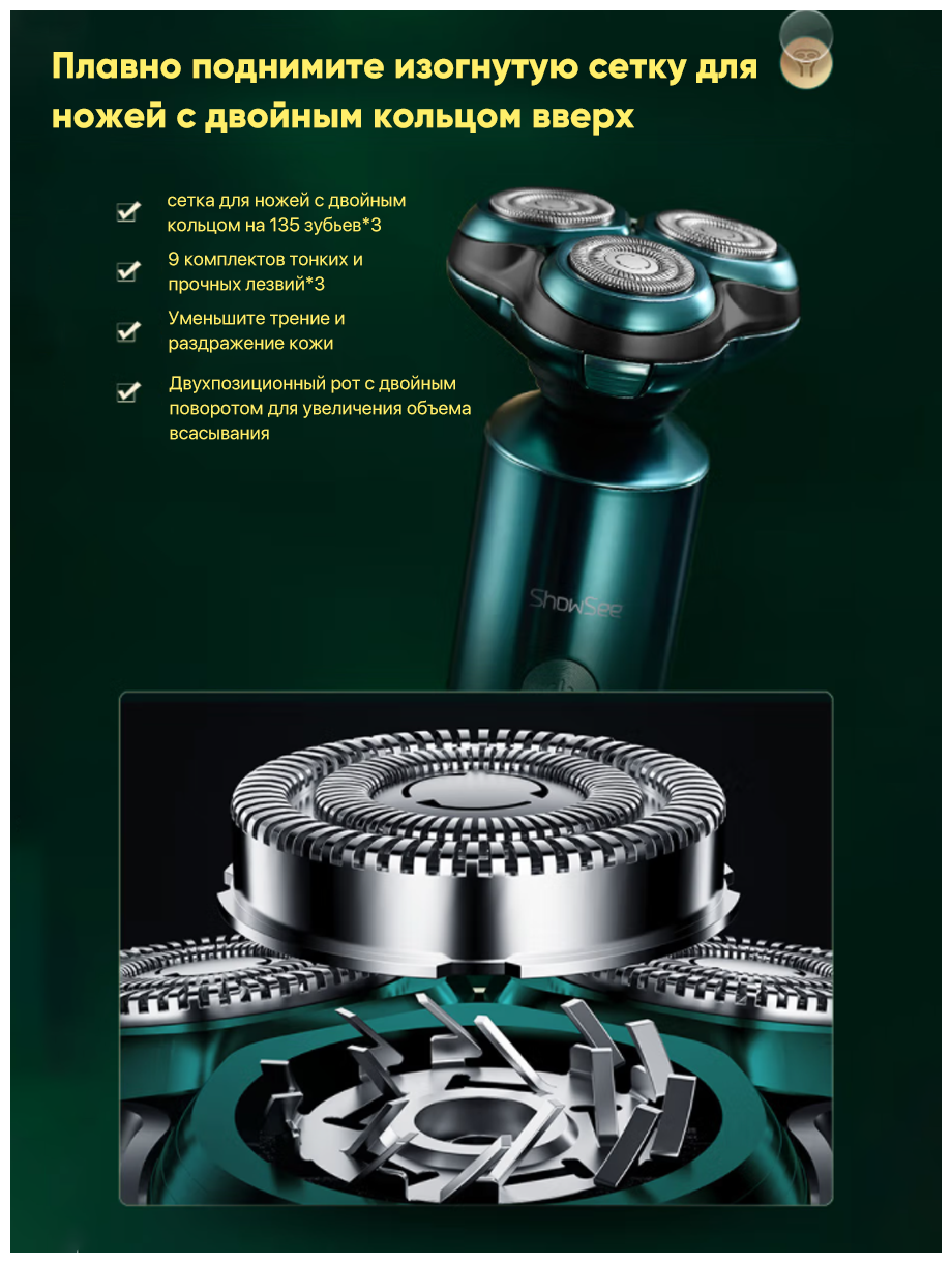 Электрическая бритва Xiaomi Showsee Electric Shaver, Зелёная (F305-G), роторная