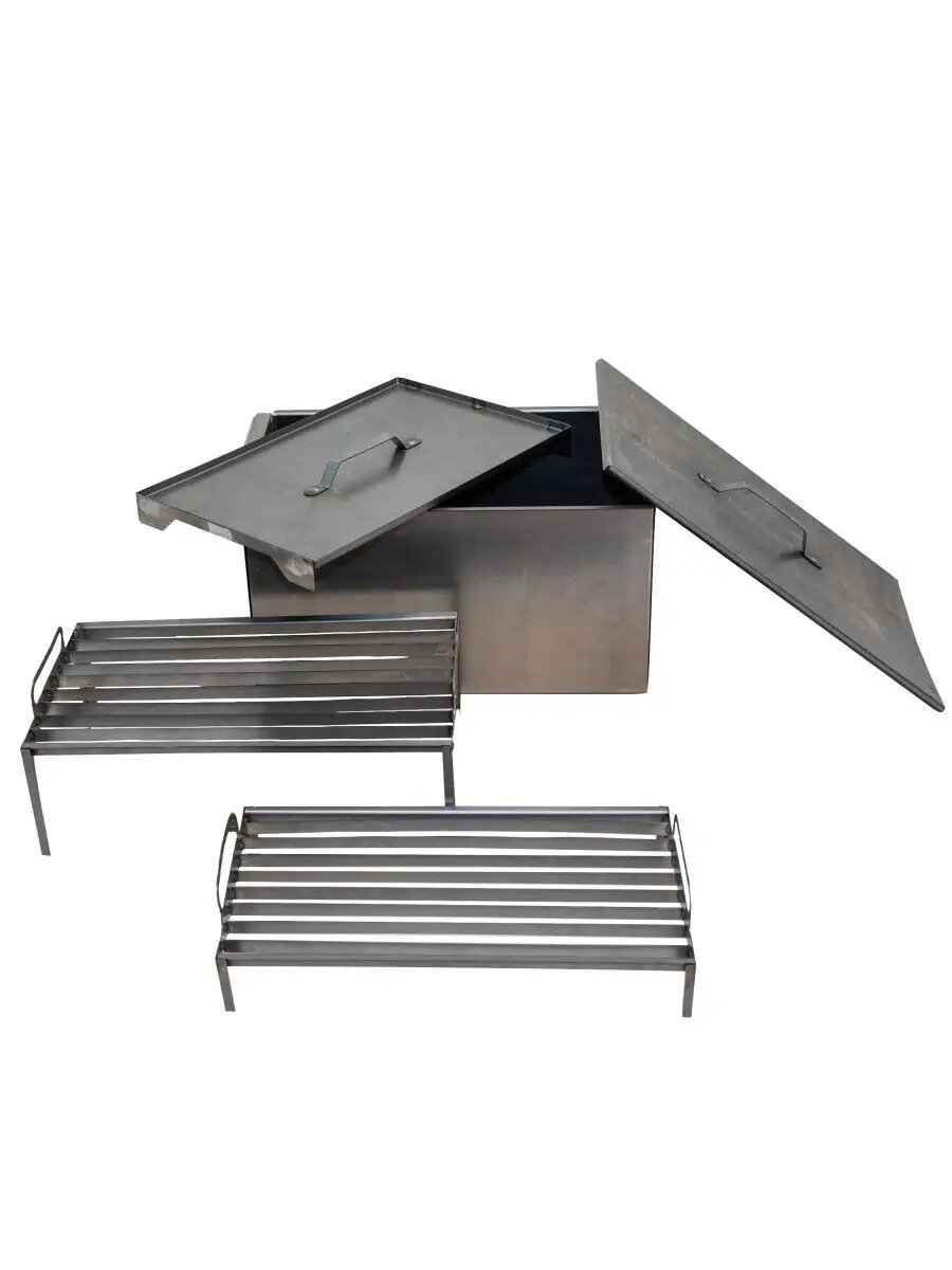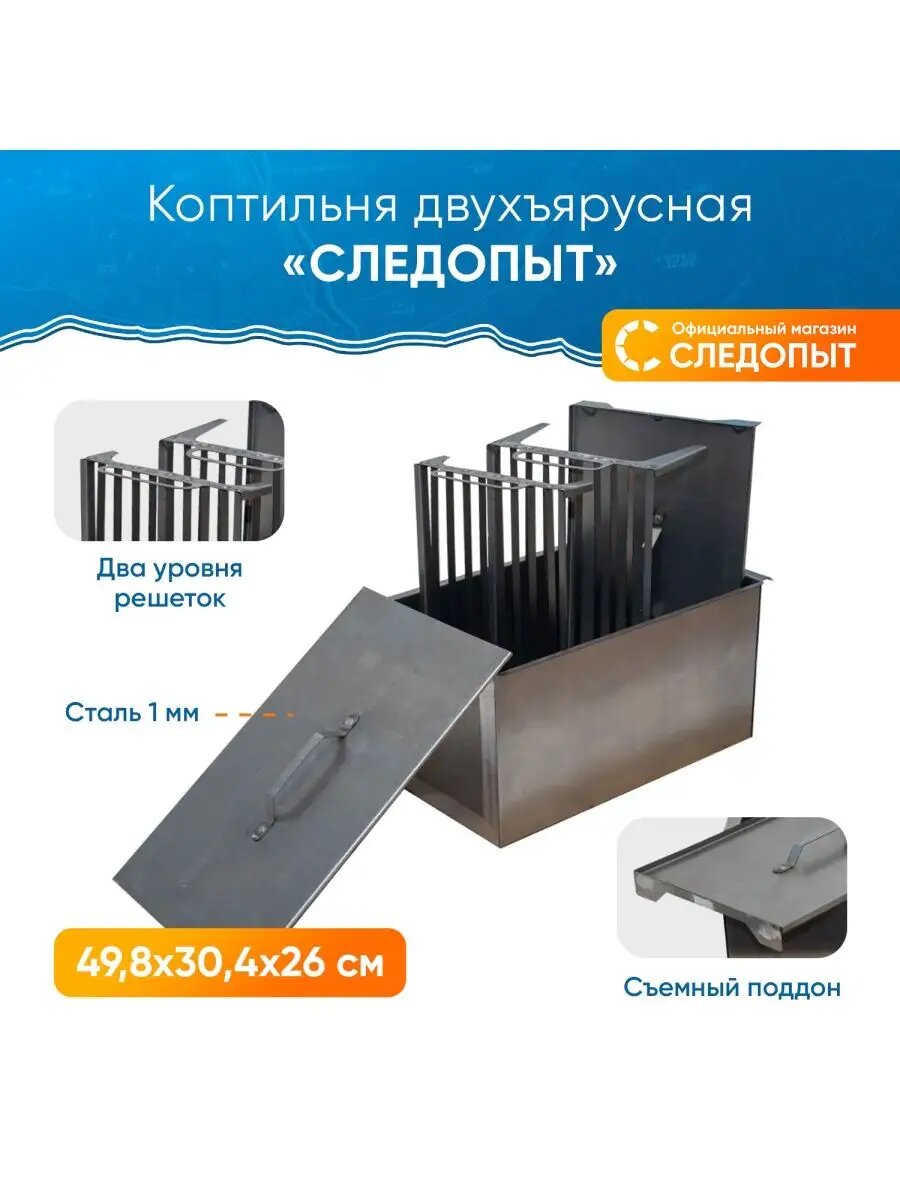 Коптильня двухъярусная "Следопыт" 498х304х260 мм с поддоном для сбора жира, сталь 1 мм