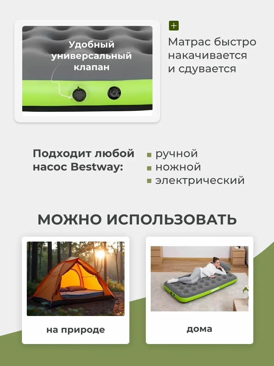Надувной матрас Bestway Twin/King 67922, 188х99 см, зелeный