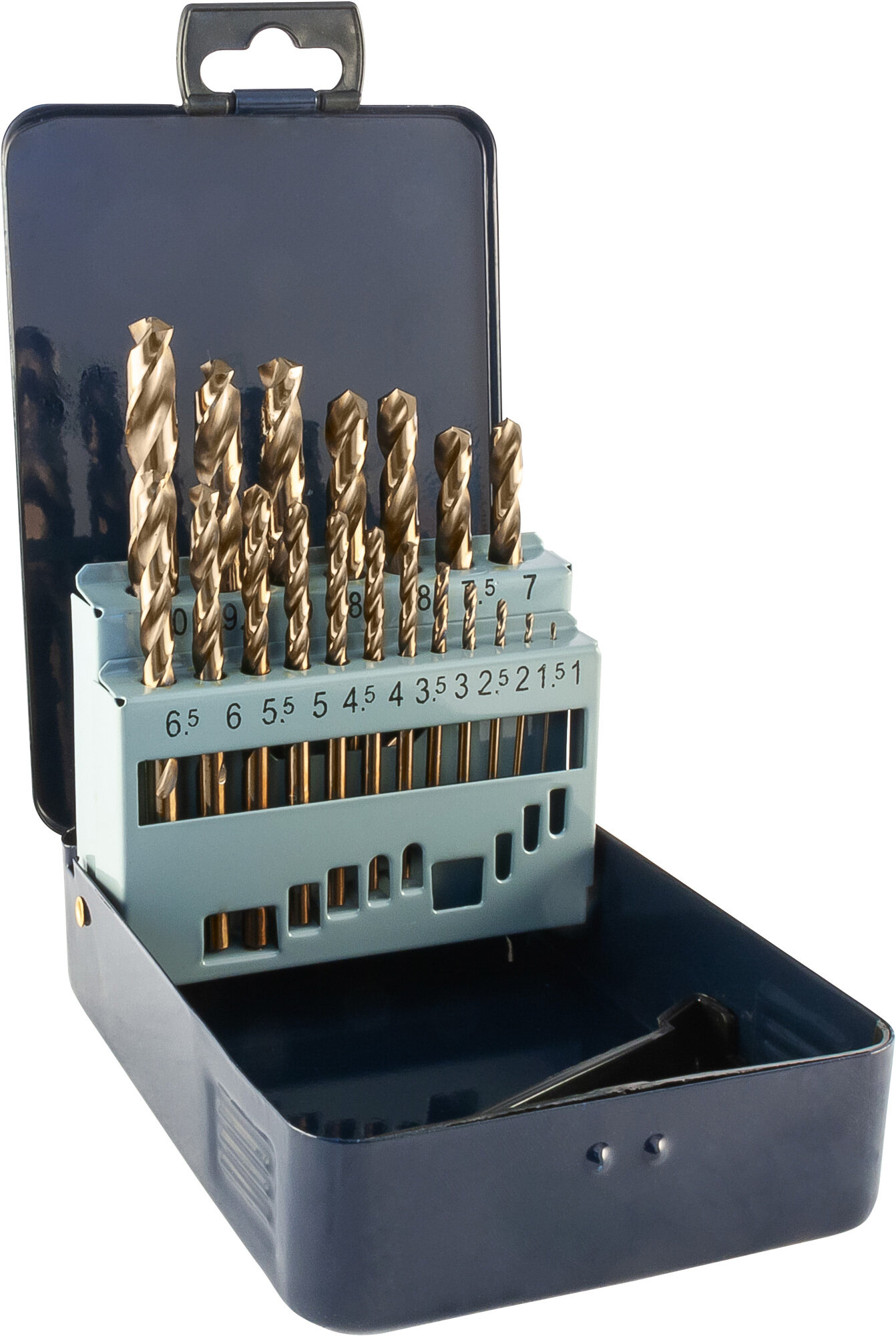 Набор спиральных сверл по металлу HSS Co в металлическом кейсе d1.0-10.0 мм 19 предметов Thorvik TDBS19K5