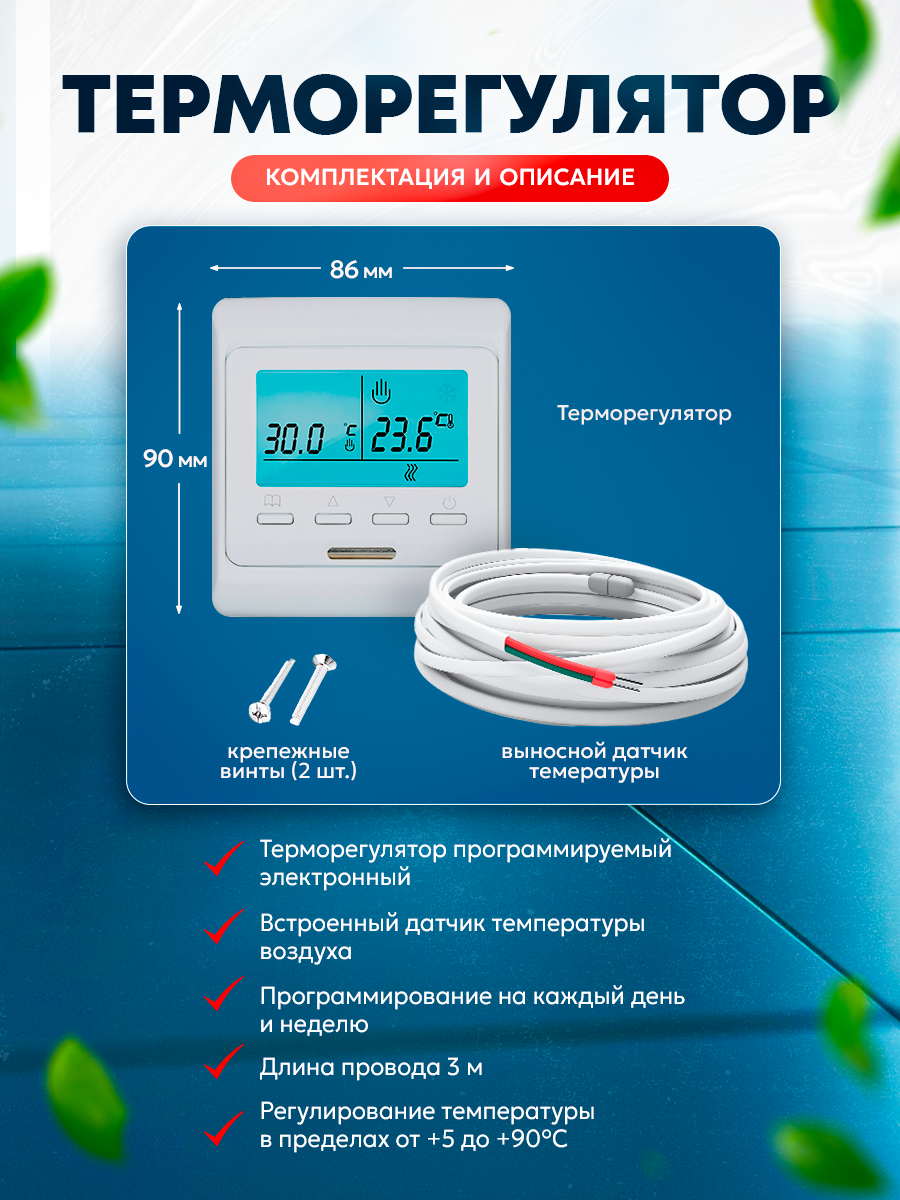 Теплый пол электрический Квадрат тепла под плитку 4,5 м2 с программируемым терморегулятором