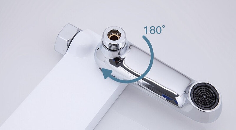 Смеситель белый для ванны, излив короткий, Латунь.