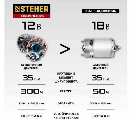 Ниже Вы можете прочитать отзывы на STEHER 12 В, 35 Нм, 2 АКБ (2 Ач), бесщеточная дрель-шуруповерт, кейс (CDB-120-2), ознакомится с подробными характеристиками, посмотреть интересные обзоры и фотографии на STEHER 12 В, 35 Нм, 2 АКБ (2 Ач), бесщеточная дрель-шуруповерт, кейс (CDB-120-2).