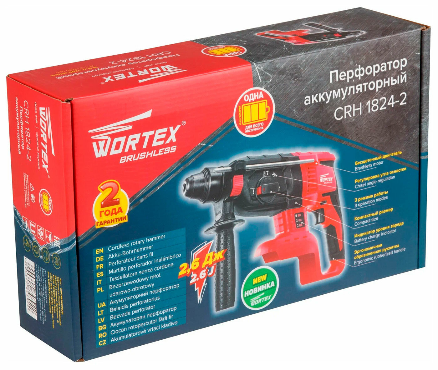 Перфоратор аккумуляторный Wortex CRH 1824-2 ALL1, 18 В, без аккумулятора И ЗУ, 2.6 Дж, вес 2.4 кг, в коробке (CRH182420029) интересное: