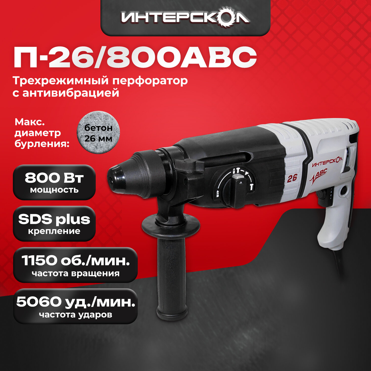 Перфоратор сетевой ИНТЕРСКОЛ П-26/800АВС SDS plus, с анти-вибрационной сист. (кейс)