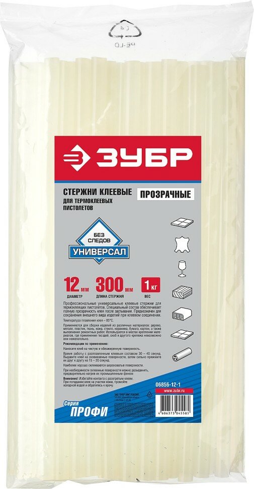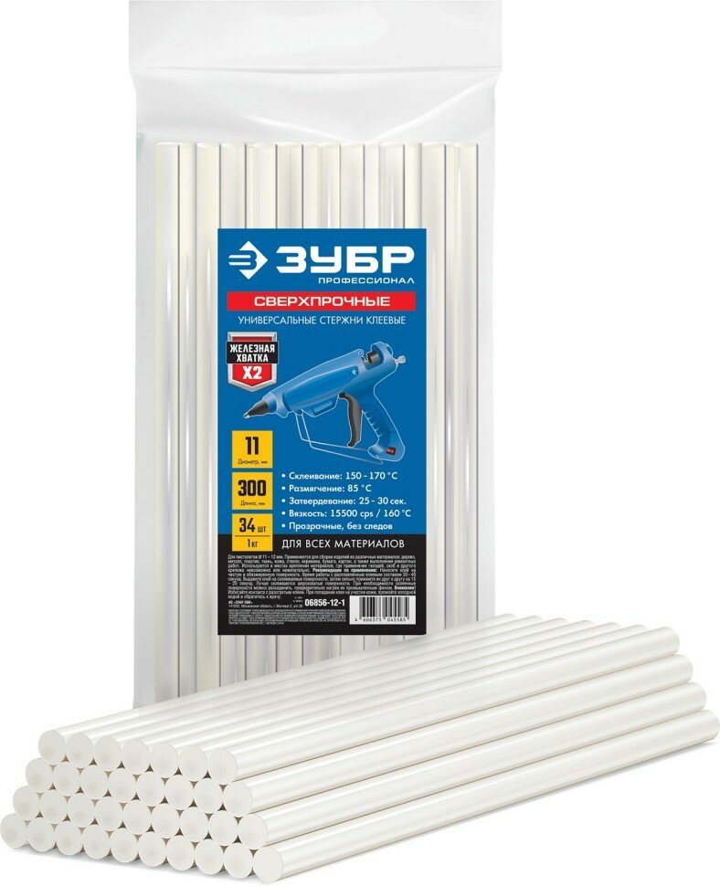 ЗУБР Профессионал прозрачные сверхпрочные клеевые стержни, d 11 х 300 мм (11-12 мм) 34 шт. 1 кг 06856-12-1