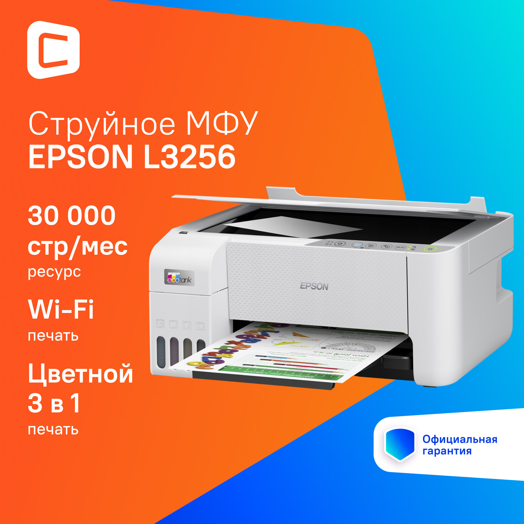 МФУ струйный Epson L3256 цветная печать, A4, с СНПЧ, цвет белый [c11cj67421/504/524/516] интересное: