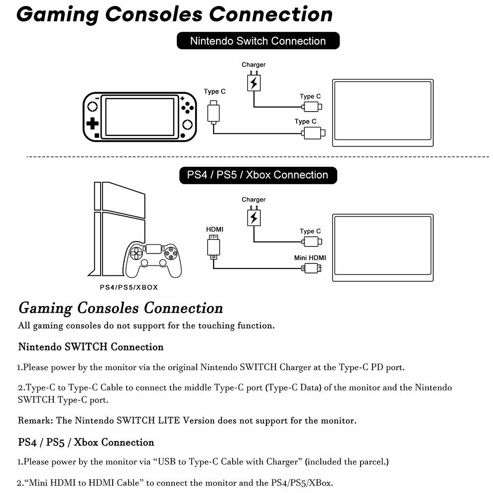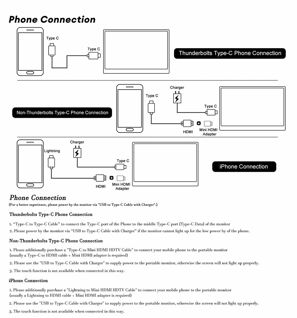 | Плюсы: | Все необходимое есть в комплекте - адаптер питания, кабель HDMI-mini HDMI, кабель USB-C двухсторонний, три кабеля USB A - USB C, и даже защитная пленка с приспособлениями для наклеивания. Изображение ок, звук есть, тачскрин работает через кабель USB. |